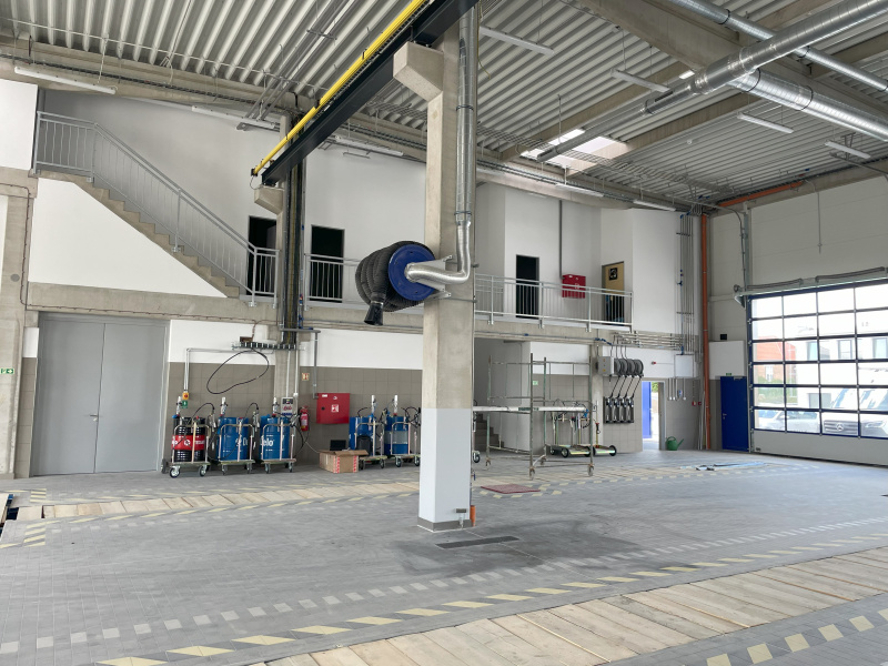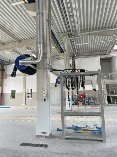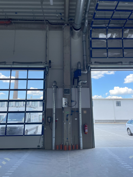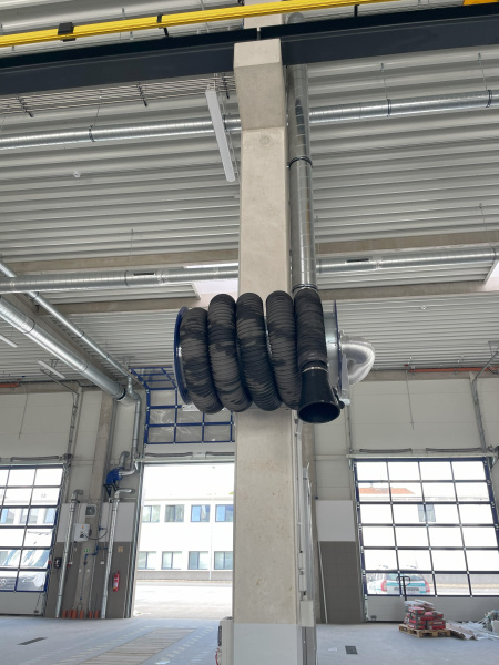 Lieferung eines kompletten Abgasabsaugsystems für das bedeutende Speditionsunternehmen Nikka Logistic. In der Servicehalle wurden Absaugtrommeln und Ventilatoren außerhalb des Gebäudes installiert.