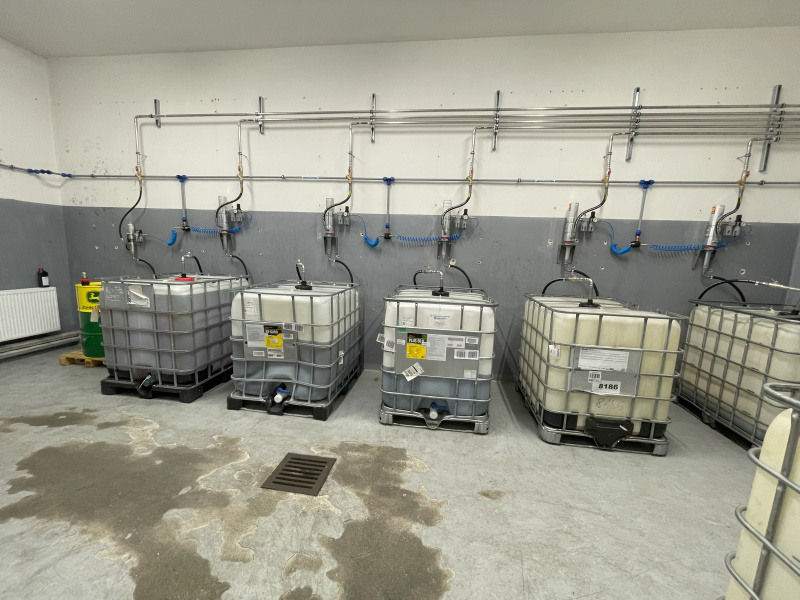 Realisierung einer Ölwirtschaft für die Firma Agrozet in České Budějovice. Ausgabe von acht Ölsorten aus 1000-Liter-Tanks und 200-Liter-Fässern. Die Ausgabestellen sind mit einem modernen drahtlosen Überwachungssystem Pulse Pro ausgestattet, das für den Anschluss an das übergeordnete System Helios vorbereitet ist.