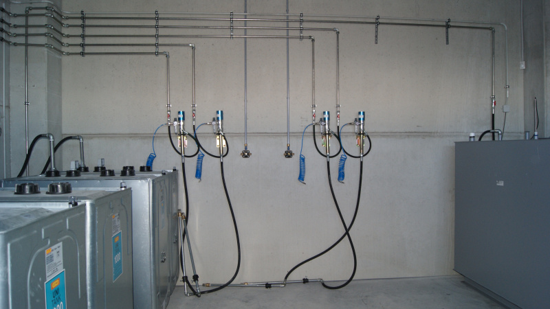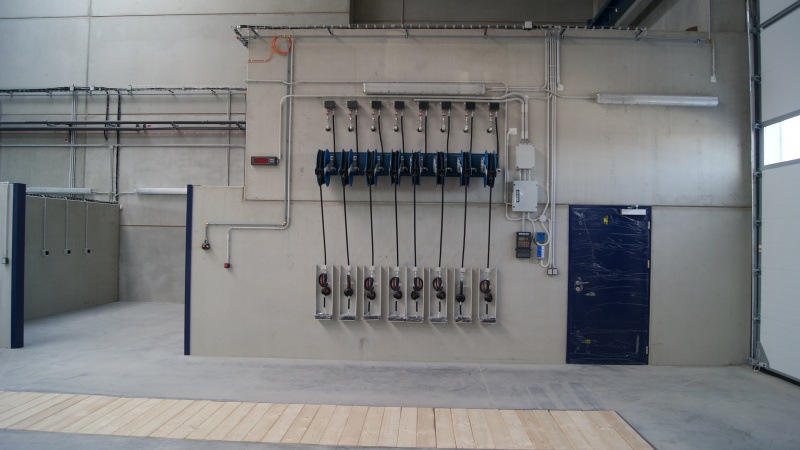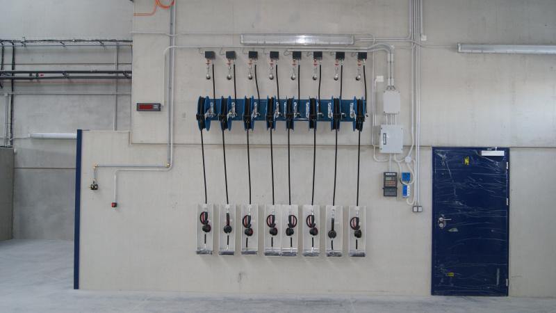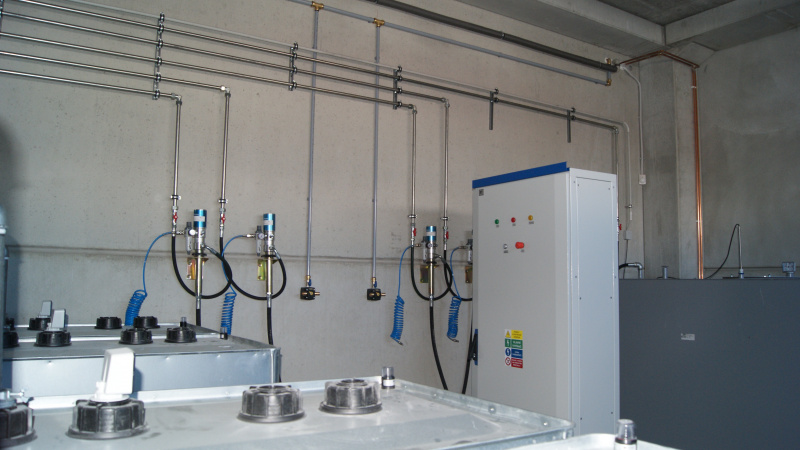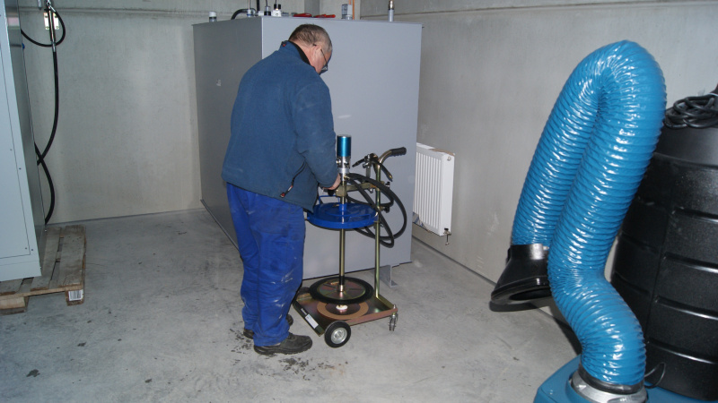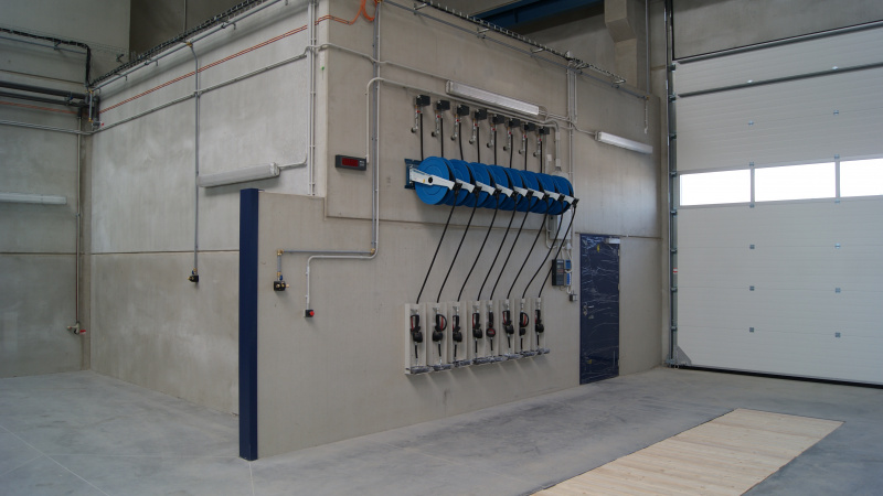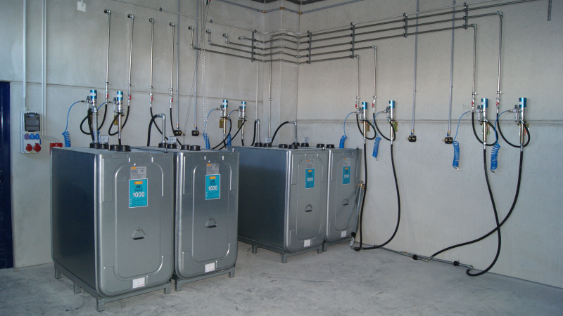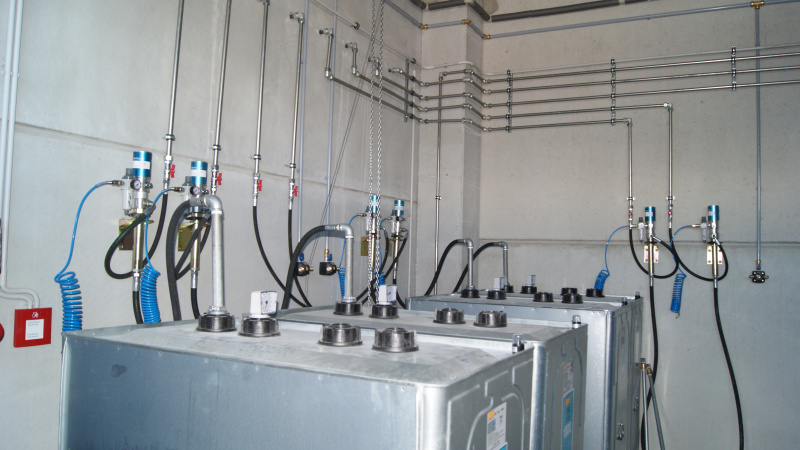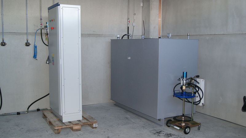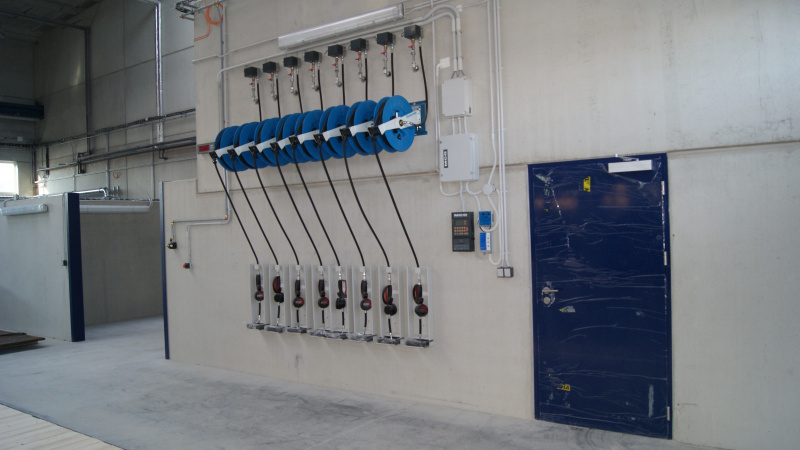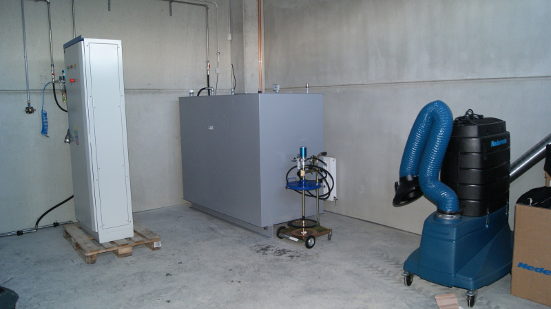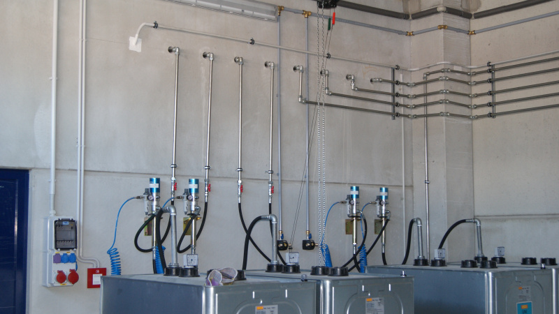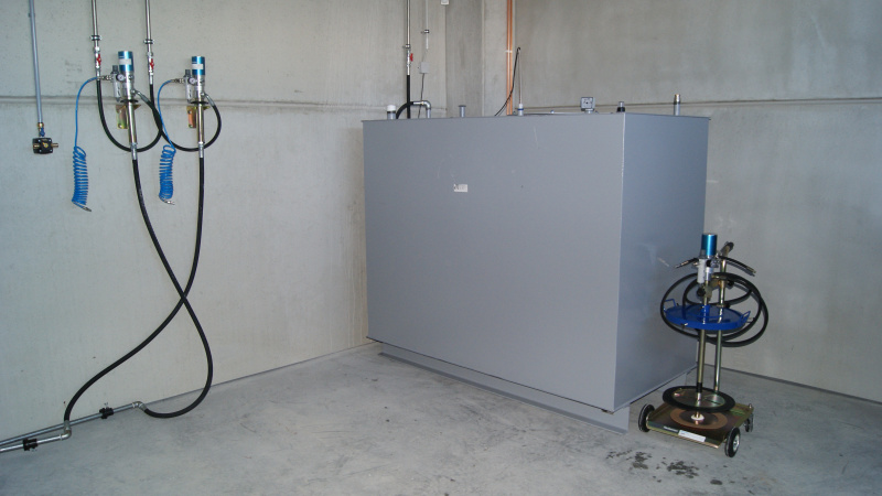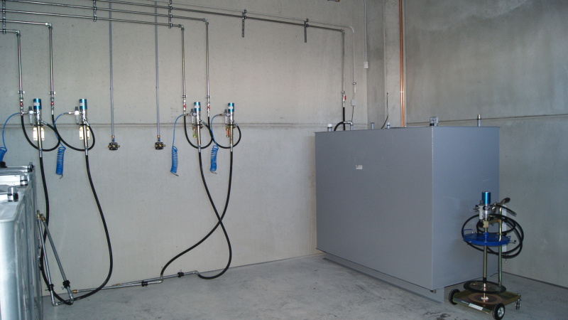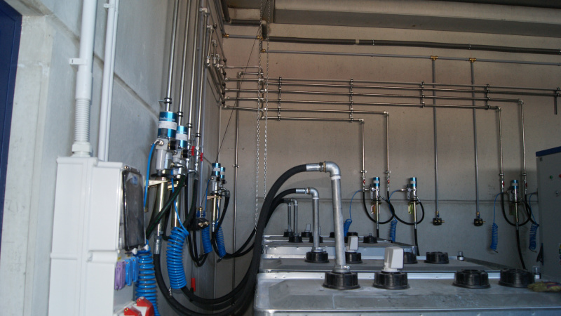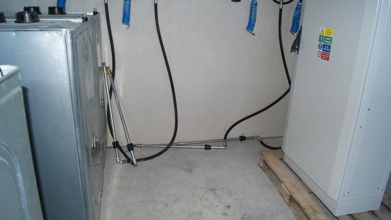 Realisierung einer kompletten Ölwirtschaft für das Servicezentrum der Firma Aquasys. Ausgabe von Ölen über Aufroller, alles überwacht durch ein elektronisches Ausgabesystem mit Datenübertragung an den PC. Sammlung von Altöl in Gruben und Ableitung in einen zentralen Lagertank. Im Rahmen der Ölwirtschaft wurde auch die komplette Ausrüstung für die Absaugung von Abgasen und Schweißgasen geliefert.