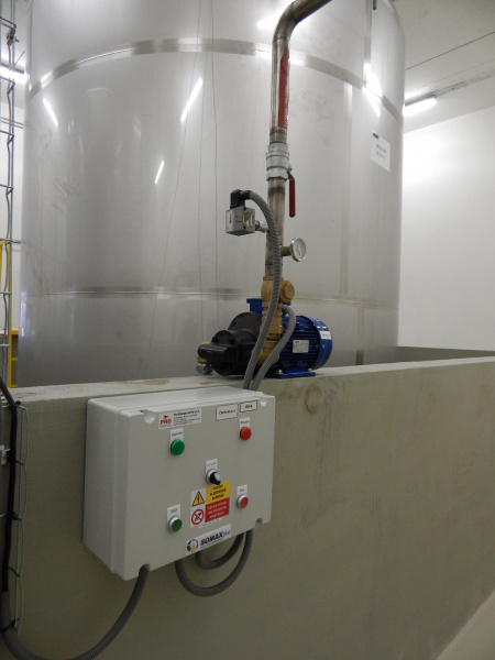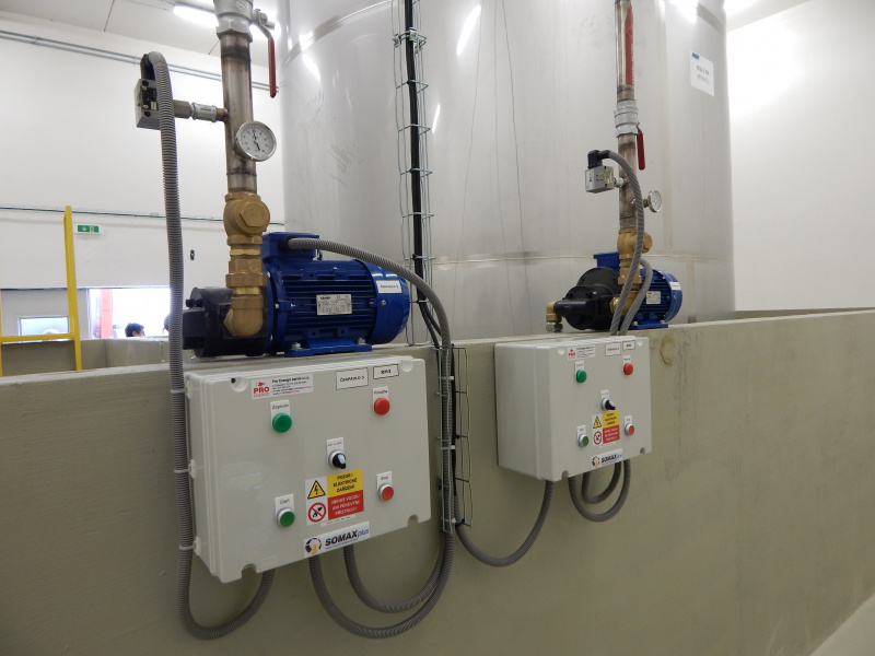 Abfüllung von Ölen in spezielle vertikale Tanks für die Automobilproduktion von BWI Cheb. Die Abfüllung erfolgt über einen an der Fassade angebrachten Abfüllkasten. Das System ist mit elektrischen Pumpen mit hohem Durchfluss ausgestattet. Die Lieferung umfasst auch maßgefertigte Schalttafeln mit Pumpenfunktionskontrolle und der Möglichkeit, zwischen manuellem und automatischem Modus umzuschalten. Teil der Lieferung ist auch die Filterung der abgefüllten Öle.