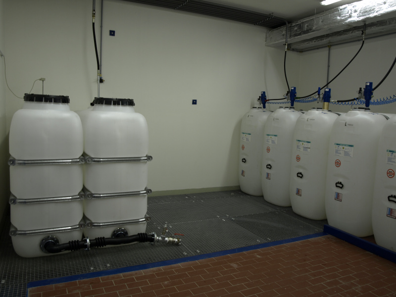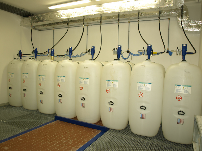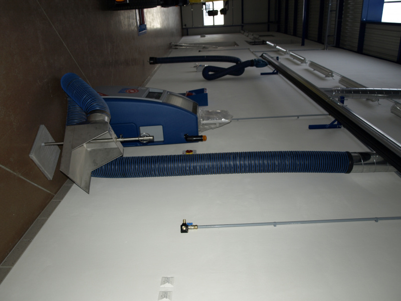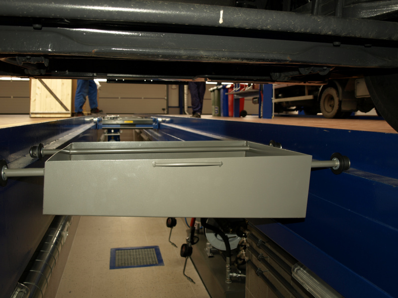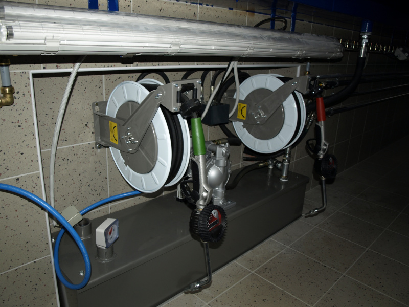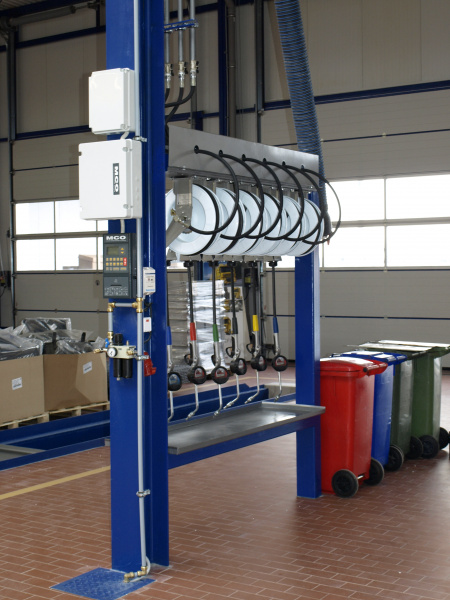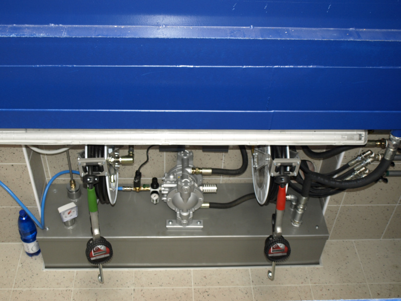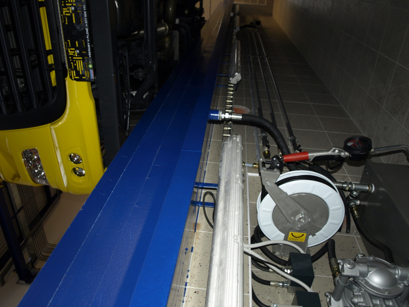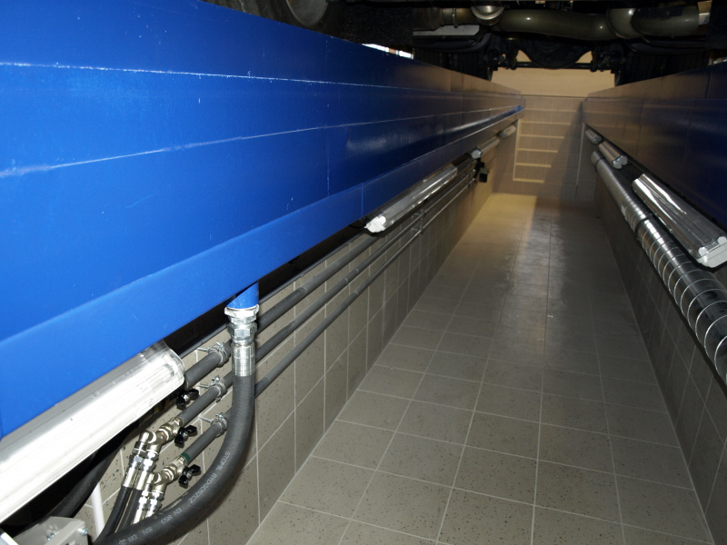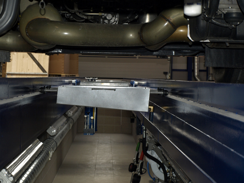 Ölwirtschaft für den Service von DAF-Lkw in Nýřany. Realisierung der Ausgabe neuer Öle an der Zapfsäule und in der Montagegrube. Absaugung von Altöl. Teil der Lieferung war auch die Installation einer Absaugleiste für Abgase.