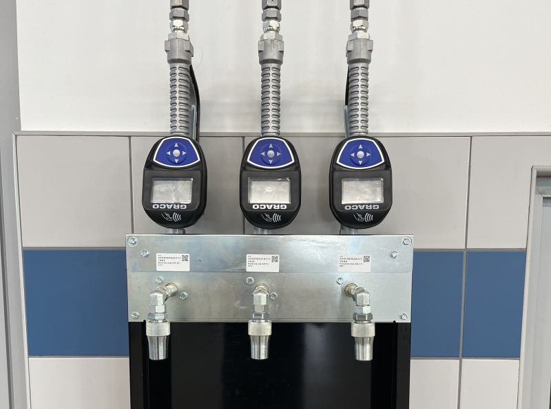 Ölwirtschaft für den Mercedes-Benz Autogroup TT-Service in Trnava. Ausgabe von drei Flüssigkeiten an einer Ölbar, die mit einem modernen drahtlosen Überwachungssystem Pulse Pro mit direkter Anbindung an das DMS Incadea-System ausgestattet ist.