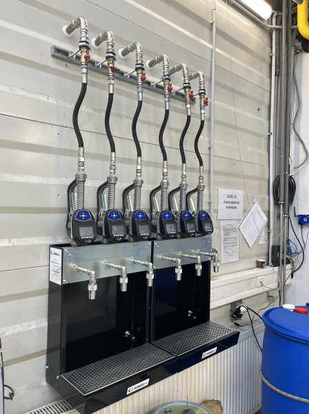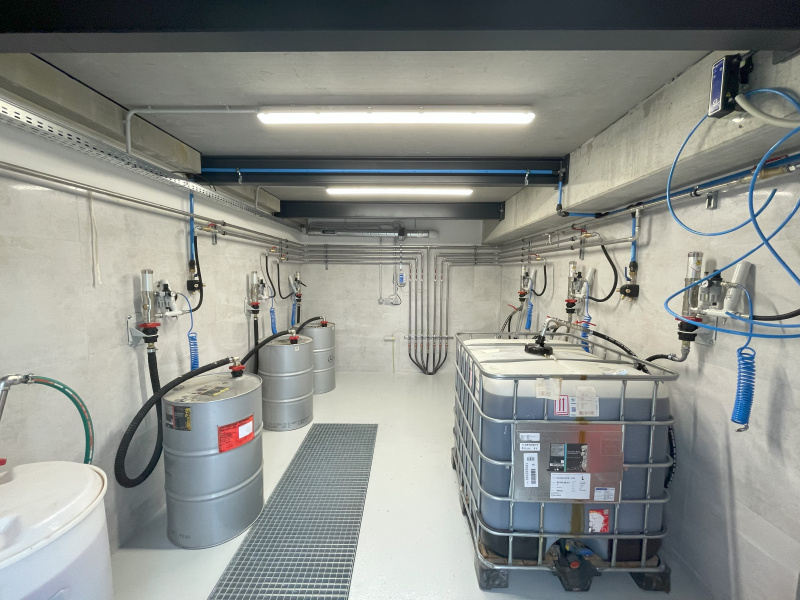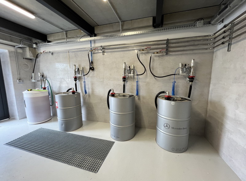 Für den bedeutenden Mercedes-Benz-Händler Panonska in Bratislava haben wir ein komplettes Ölmanagementsystem realisiert. Die Ausgabe erfolgt an zwei Stellen, die mit einer Ausgabeleiste für 3 Flüssigkeiten und einer Ausgabeleiste für 6 Flüssigkeiten ausgestattet sind. Die Ausgabeleisten sind mit einem modernen Überwachungssystem Pulse Pro ausgestattet, das mit der übergeordneten Software DMS Incadea verbunden ist.