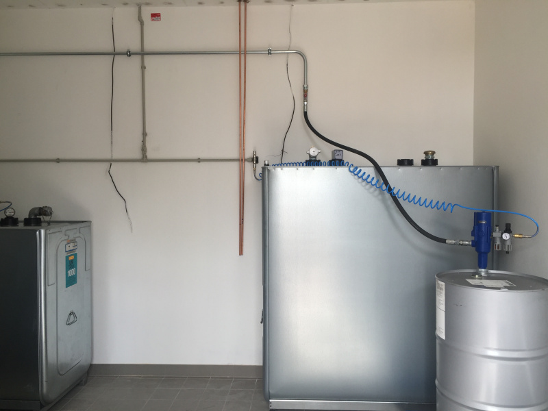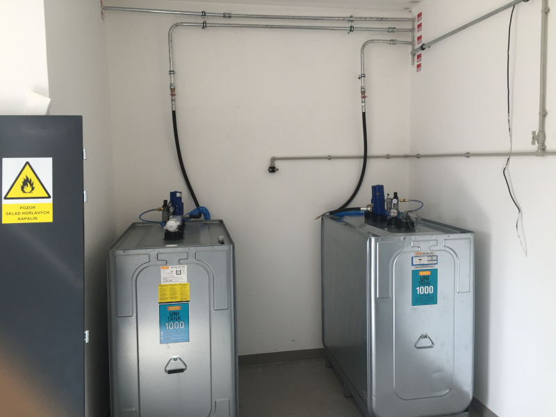 Lieferung neuer Öle und Sammlung gebrauchter Öle für den Mercedes-Benz VSP Auto Plzeň-Service. Ausgabe neuer Öle an einer Ölbar, die mit einem Überwachungssystem zur Datenerfassung mit Übertragung an einen PC ausgestattet ist. Sammlung gebrauchter Öle in einem doppelwandigen Ganzmetalltank mit Füllstandsmessung.