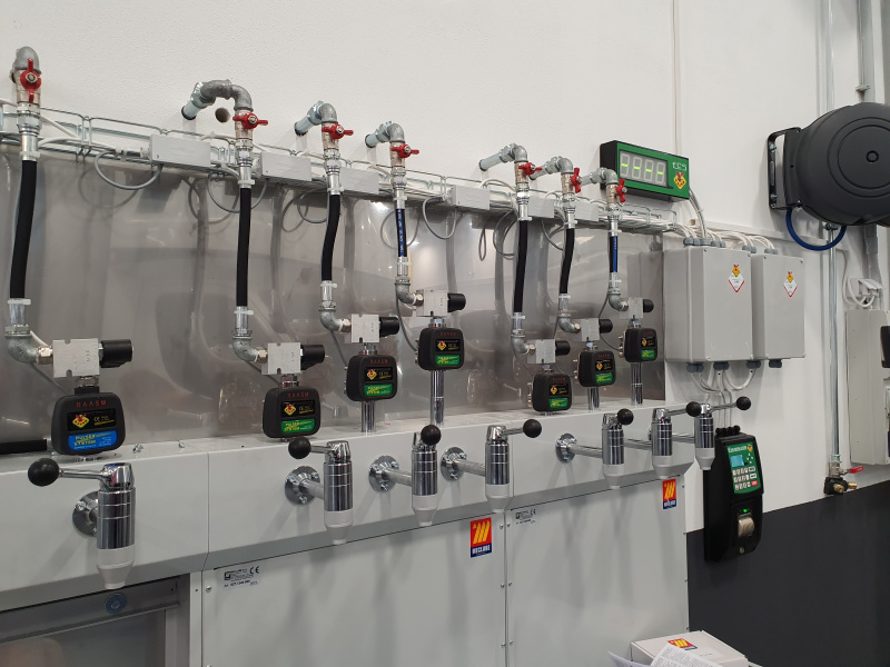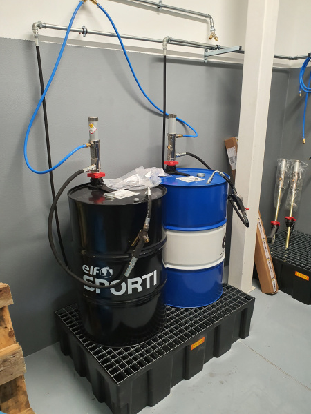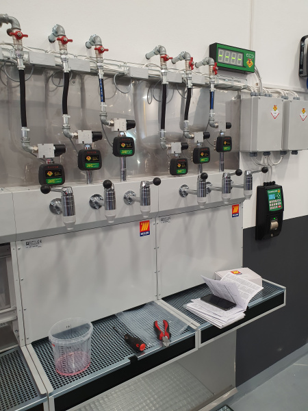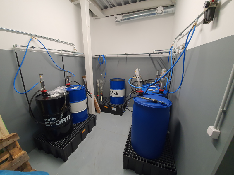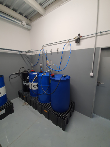 Lieferung der Technologie für die Ausgabe neuer Öle an der Ölbar. Die Ausgabe wird durch ein Überwachungssystem mit Datenübertragung an einen PC gesichert.