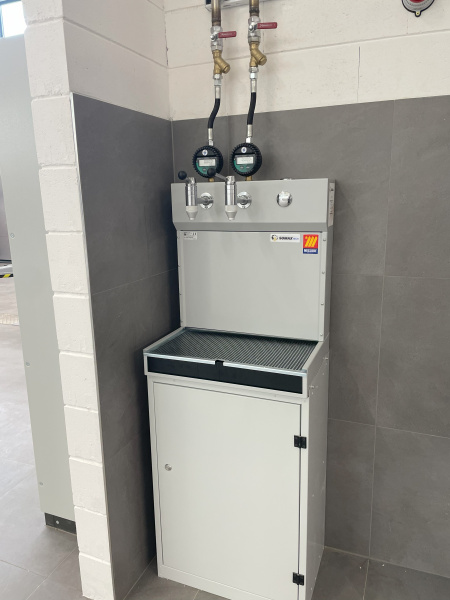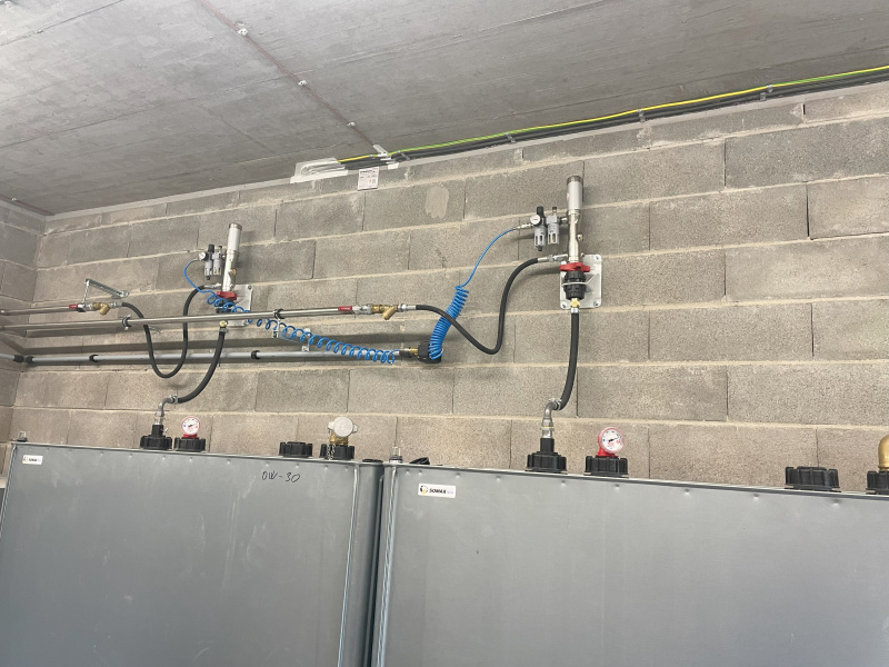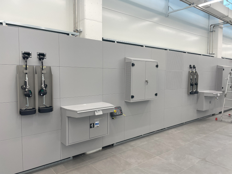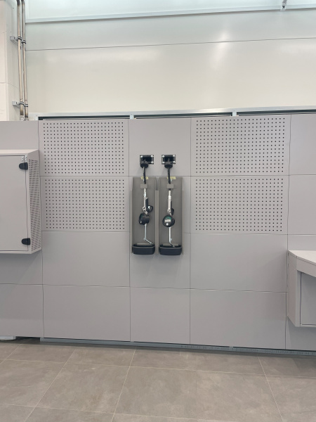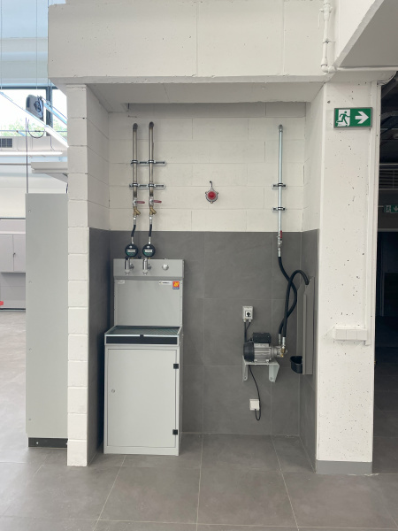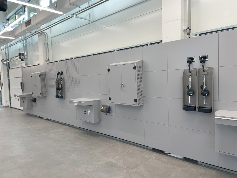 Komplette Lieferung der Ölwirtschaft für den neuen Volvo-Kfz-Service in Prag-Stodůlky. Ausgabestellen gemäß den Anforderungen von Volvo in Wandpaneele eingebaut.